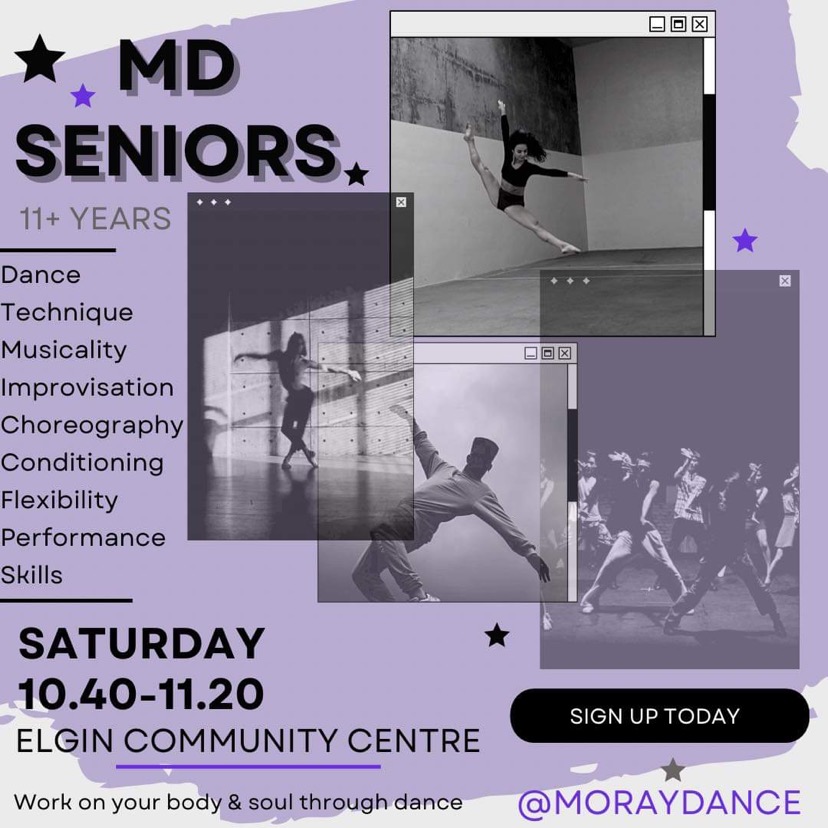 – MD Saturday Stars Seniors: this class spot focus’s on different areas each week for ages 12+ in Elgin. All in all this class is to help every genre of dance and not just one in particular. This class includes: body conditioning, flexibility, performance skills, focus improvements, improvisation, musicality and SO much more!!